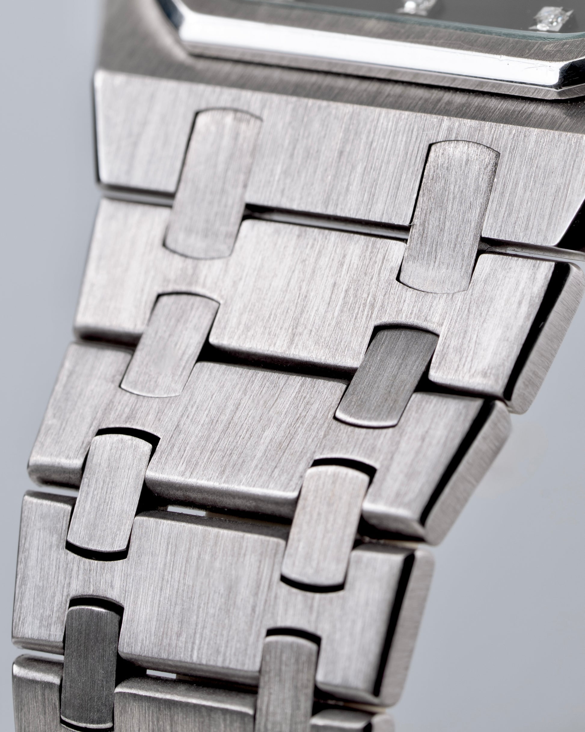 The stunning design is remnant of the original octagon designed by Genta, in fact the bracelet is exactly the same as that found on the octagon models.