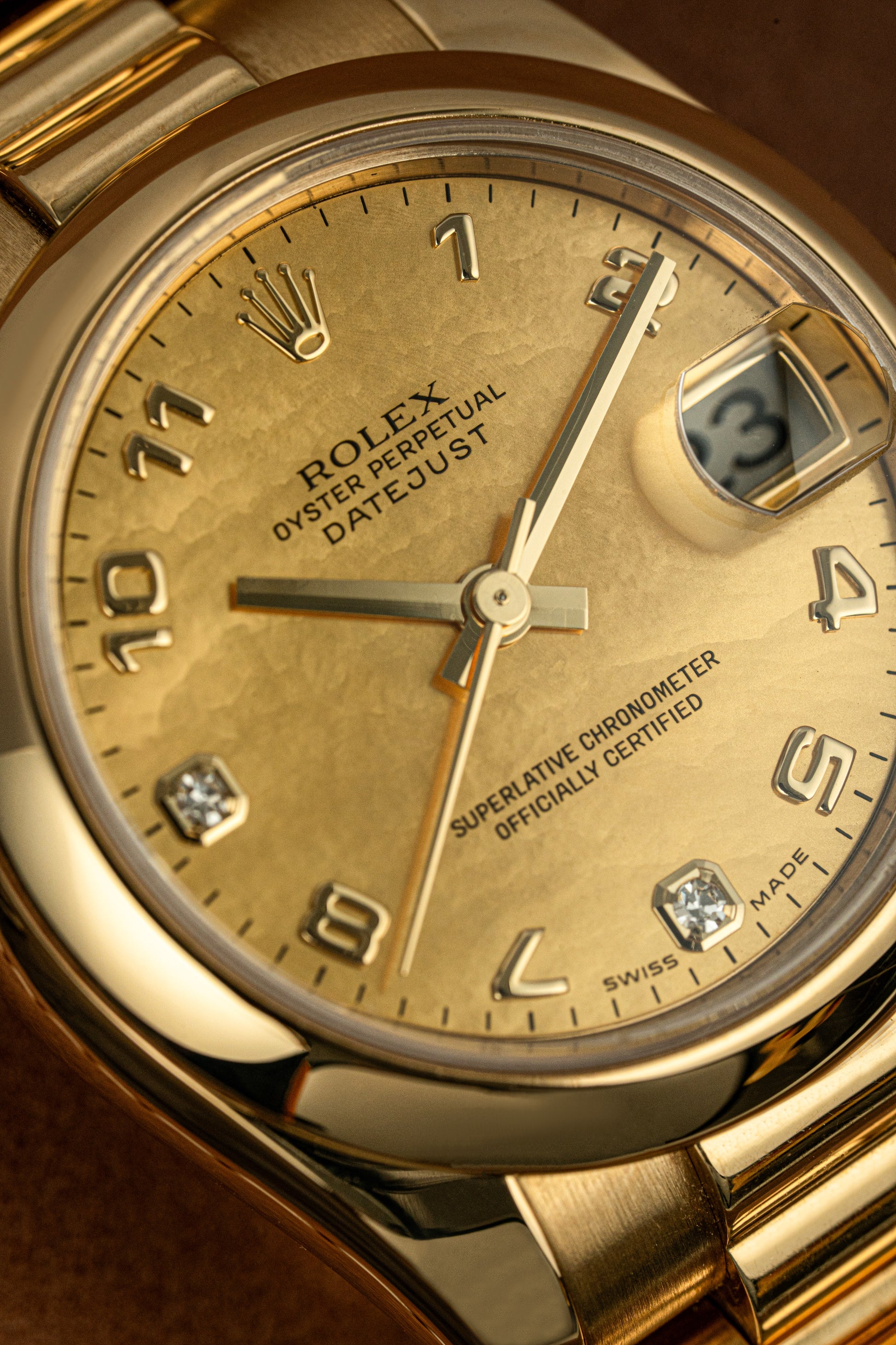For sale is a Rolex Datejust Ref. 178248 in 31mm, crafted entirely from solid 18k yellow gold and fitted with the prestigious Presidential bracelet.