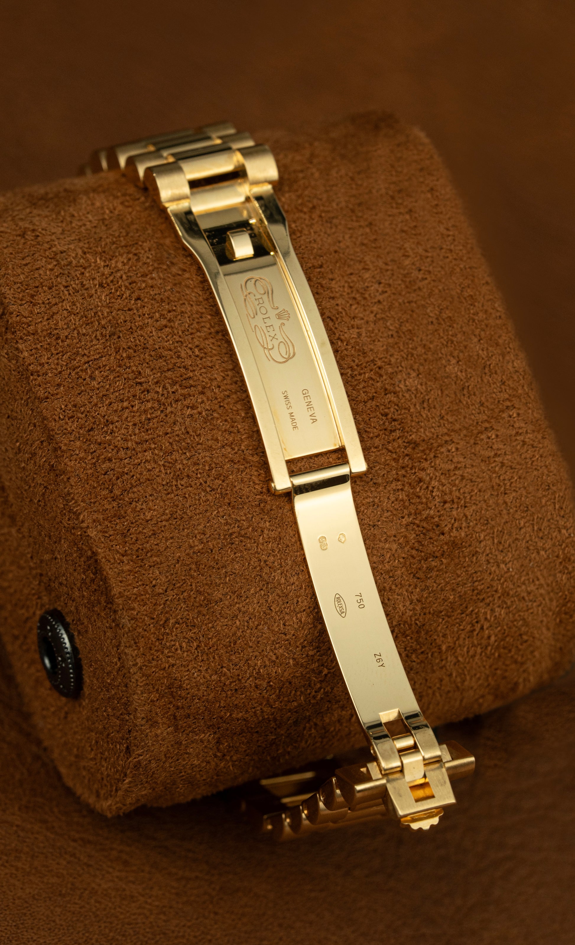 Encasing the dial is a 31mm Oyster case in 18k yellow gold, paired with the President bracelet, a hallmark of Rolex luxury, offering both comfort and prestige.