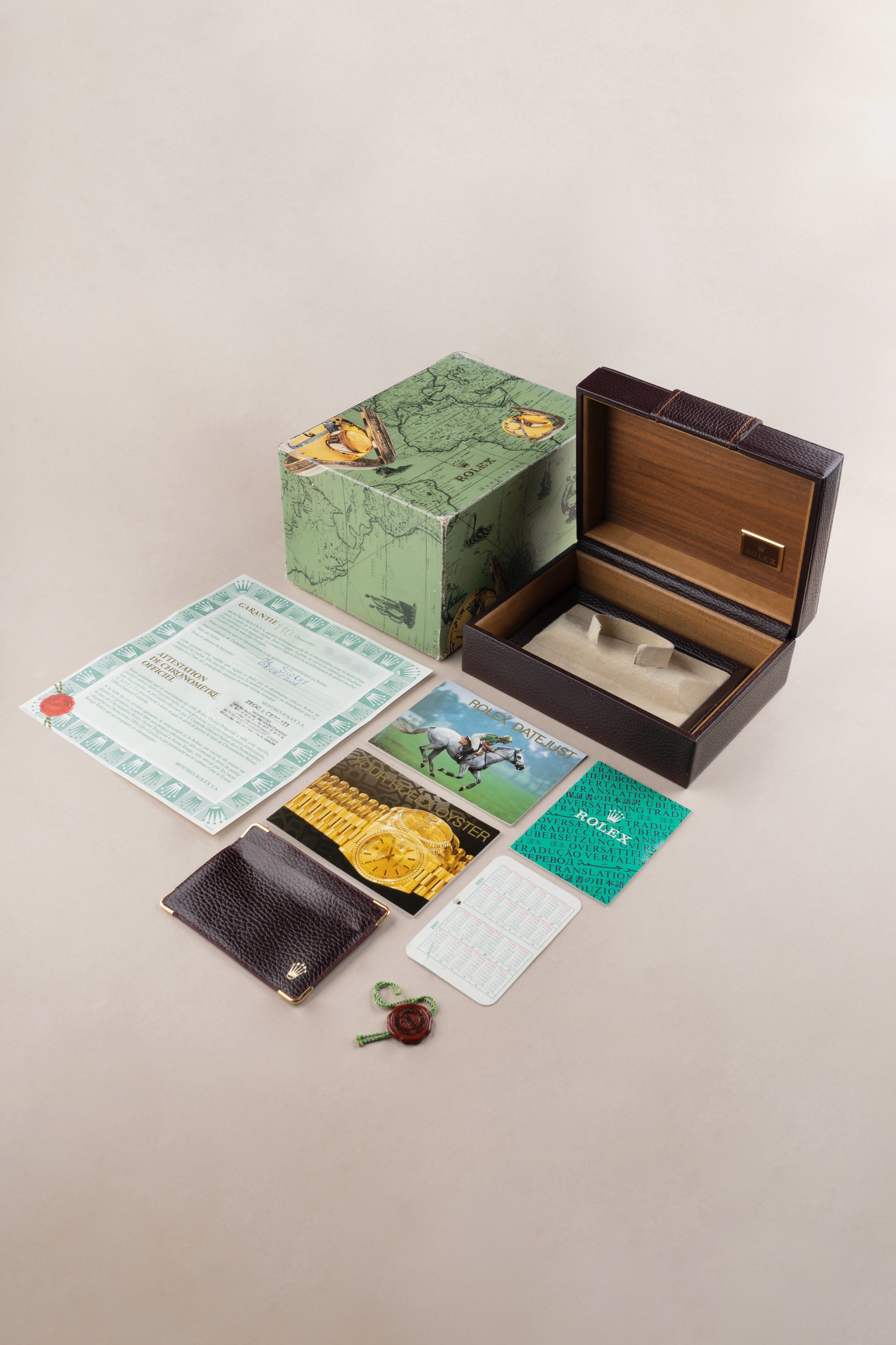 This remarkable piece is sold complete with the original Rolex Box, Papers, Manuals, Calendar Card, Red Swing Tag & Leather Wallet.