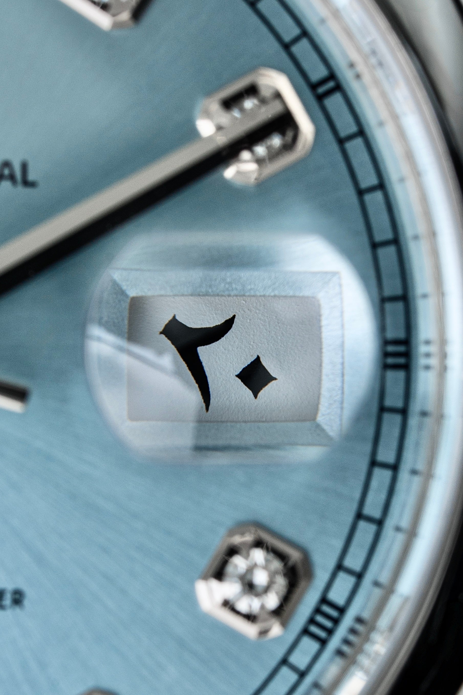 The Day & Date are displayed in Arabic Script; a prime example of how Rolex tailors its iconic designs to meet the preferences and cultural nuances of different regions around the world. Although originally designed for the Middle Eastern market, the Arabic script has gained mainstream popularity and has become a highly sought after feature for collectors everywhere.
