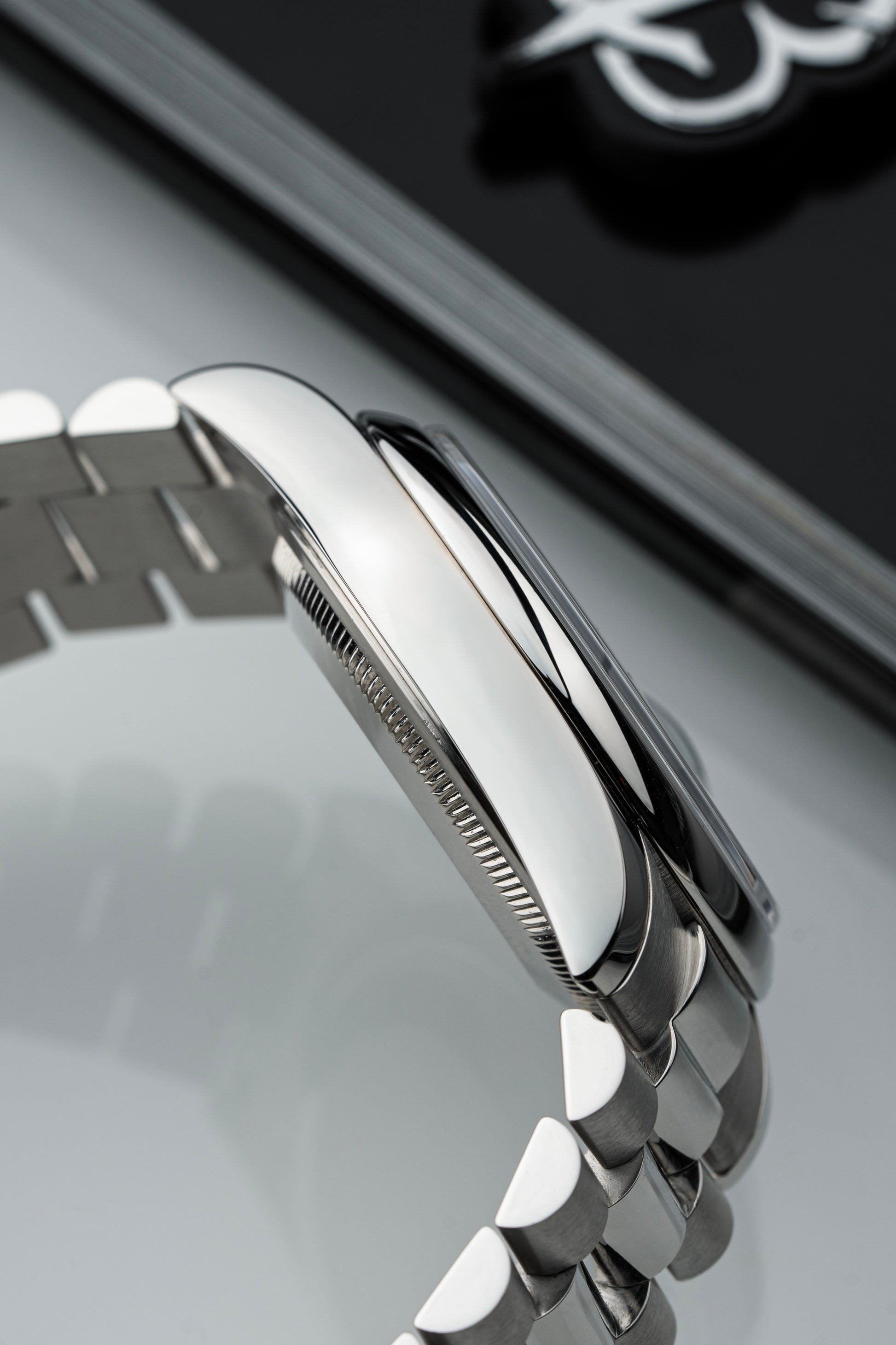 This example of the 118206 dates to 2005 which means that it has the upgraded solid-link bracelet and new style clasp which improves the its overall durability, weight, and comfort. Solid links provide a more robust feel on the wrist, giving the watch a sturdier, premium presence while also offering better longevity.